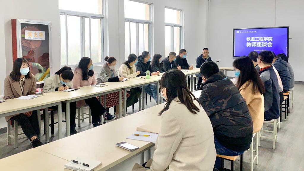 会议第二项,建筑系系主任符惠萍、信号系系主任王建国、铁道系系主任李鑫分别代表发言,总结了日常教学中团队力量、教学设备维护、员工考勤管理及教室卫生情况保持等问题。