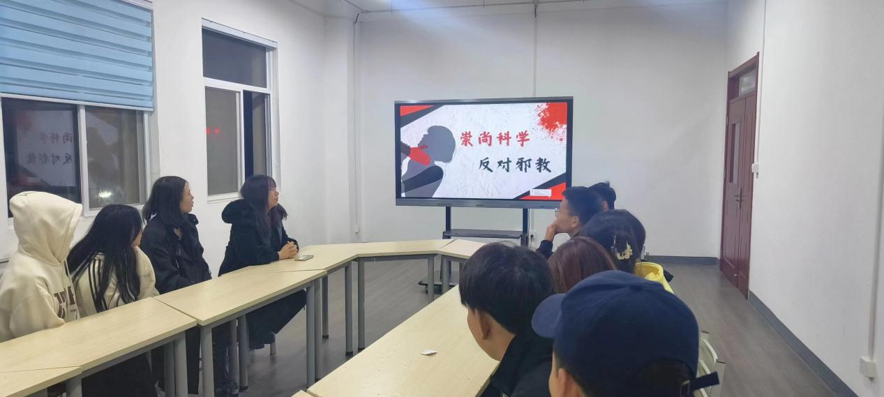 接着,各班团支书组织同学们观看反邪教教育片,阅读反邪教宣传资料,给同学们普及反邪教相关知识,调动了同学们参与反邪教斗争的主动性和积极性,达到了入脑入心的效果。