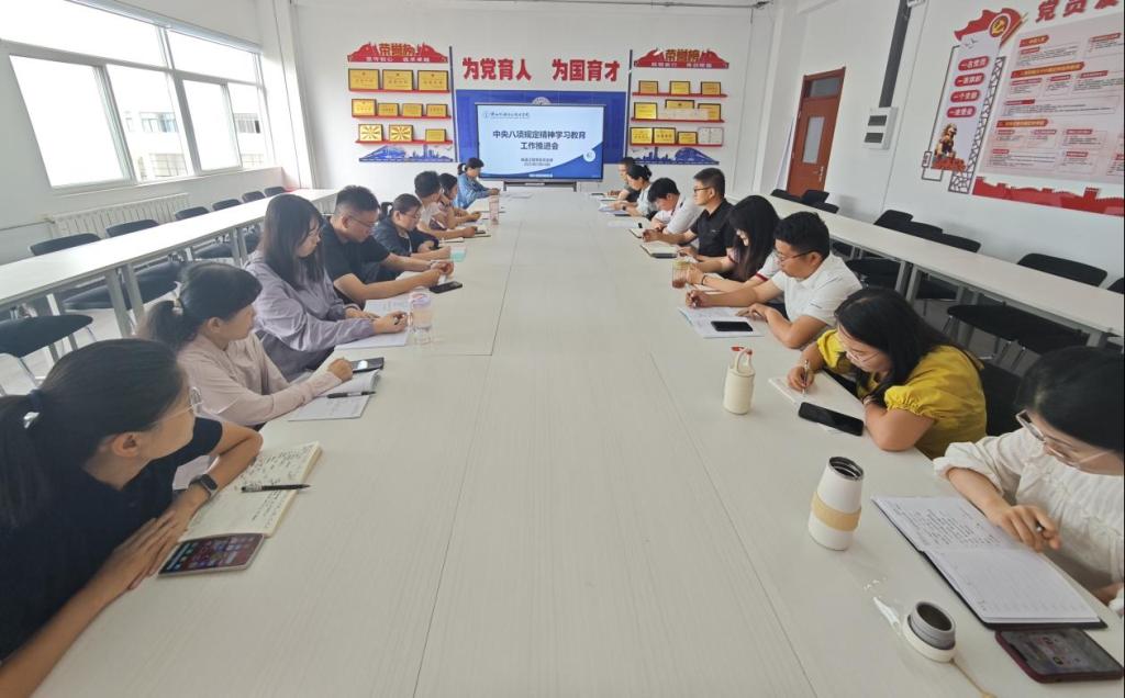 为全面贯彻落实中央、省委教育工委、公司党委关于深入贯彻中央八项规定精神学习教育的相关要求,进一步强化作风建设,推动学习教育走深走实,持续推进党风廉政建设,5月26日下午,公司党支部在行知楼南207召开了深入贯彻中央八项规定精神学习教育工作推进会。会议由党支部书记满春燕主持,支部全体教师党员参加会议。