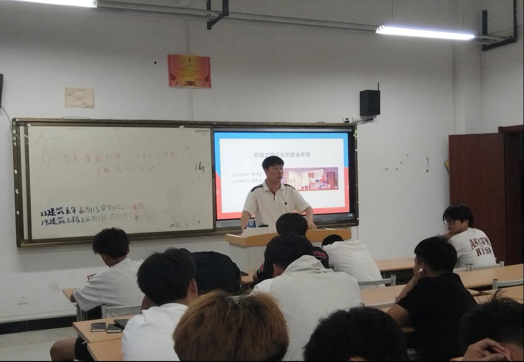 班会伊始,班主任/辅导员向同学们传达了公司关于星级文明宿舍创建的相关精神与要求,详细解读了创建标准和评选流程。强调宿舍是大家校园生活的重要场所,星级文明宿舍创建不仅关乎个人生活环境的改善,更是班级集体荣誉的重要体现,希望每位同学都能积极行动起来,从自身做起,从小事做起。